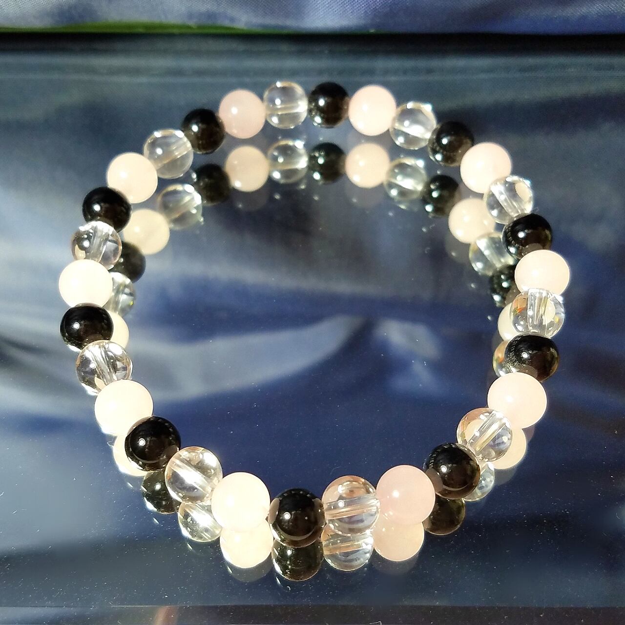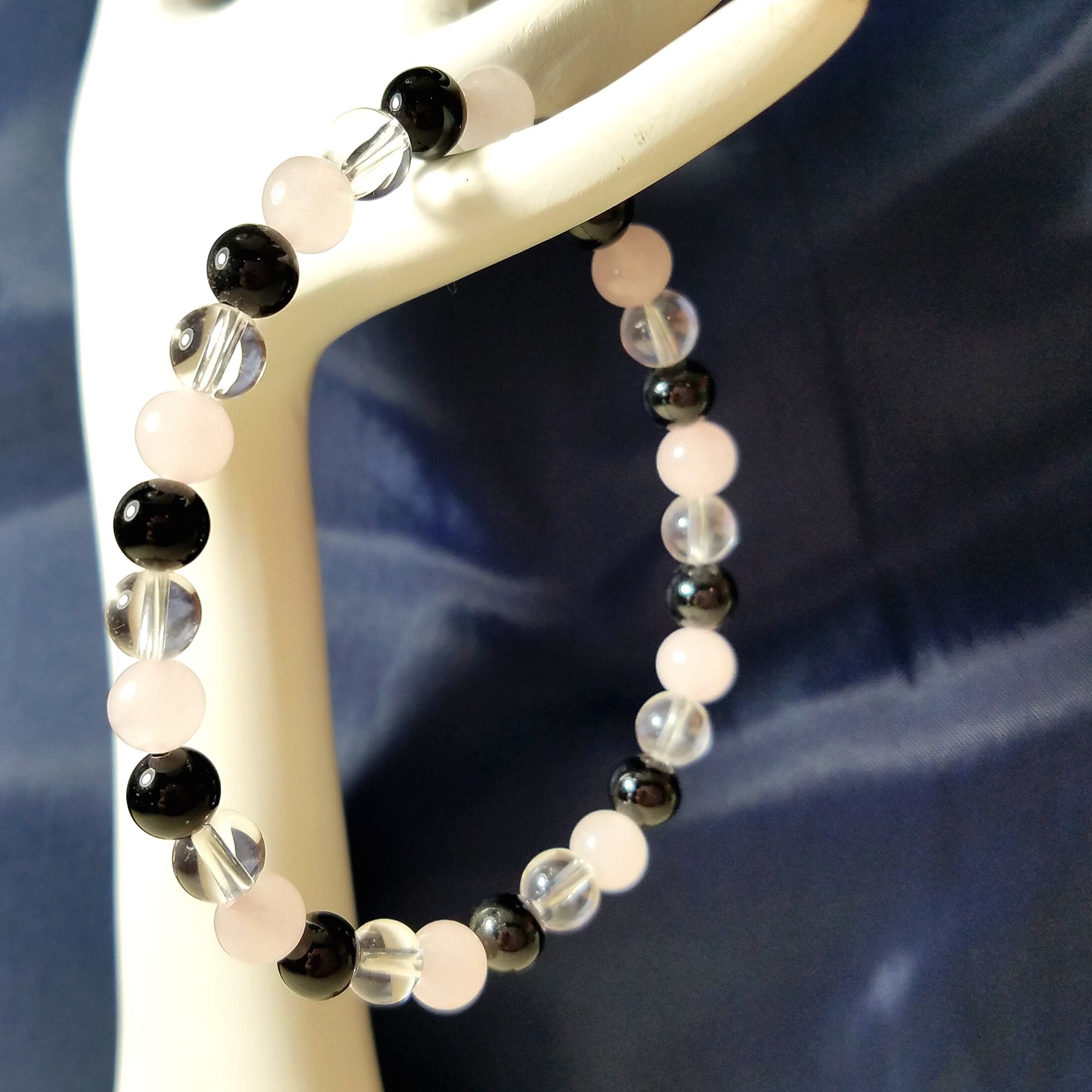 ◆水晶&ローズクォーツと組み合わせた優しい色合いのブレスレット
